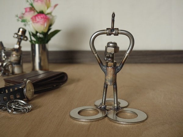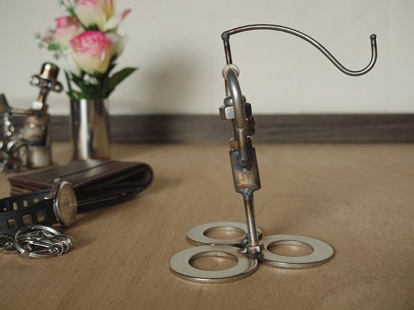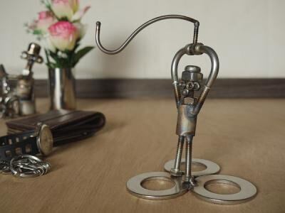 ステンレス製ボルトナットのアクセサリースタンドロボット雑貨。