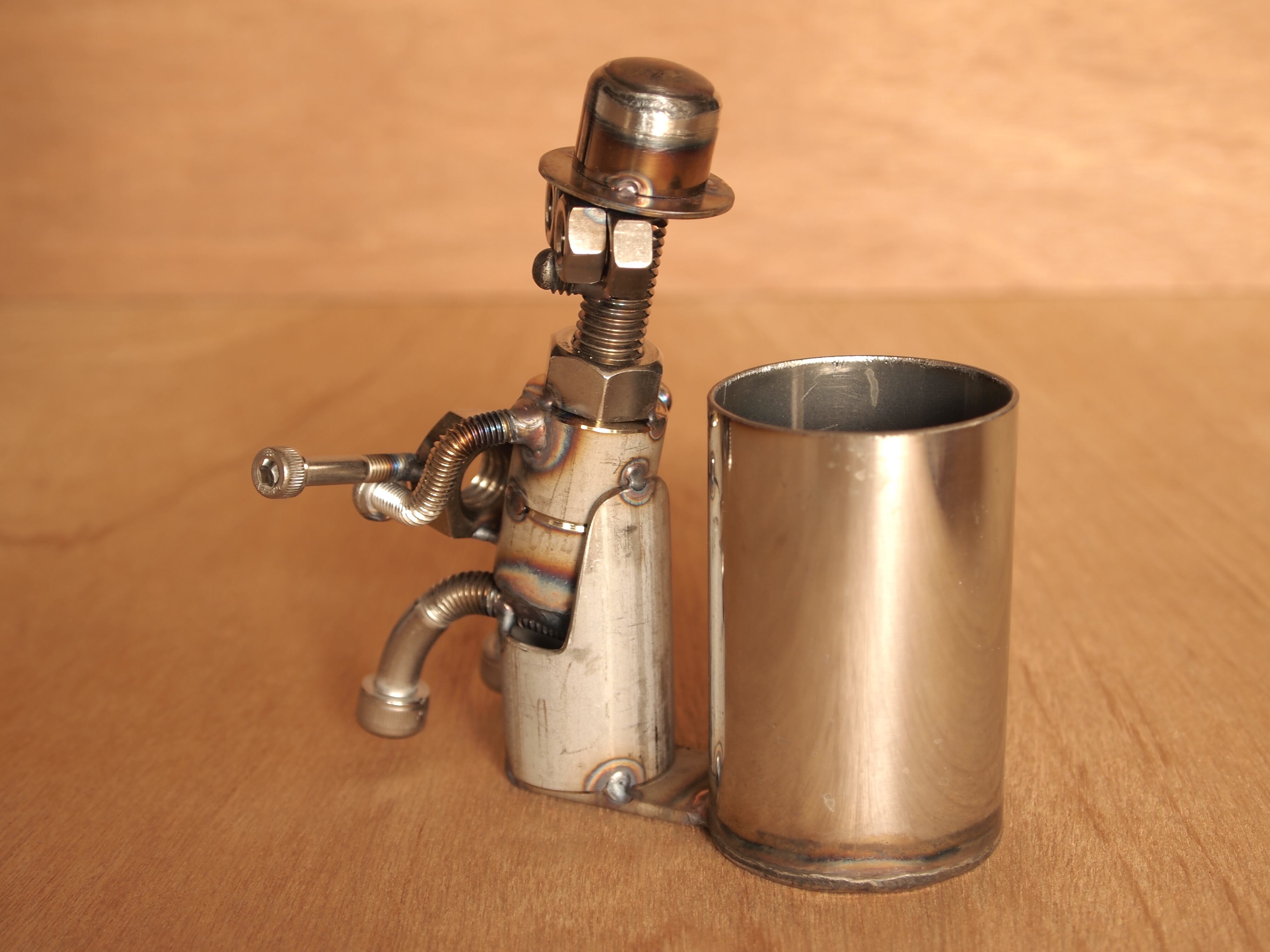 ステンレスのボルト・ナットを使ったロボットの大きいペン立てです。