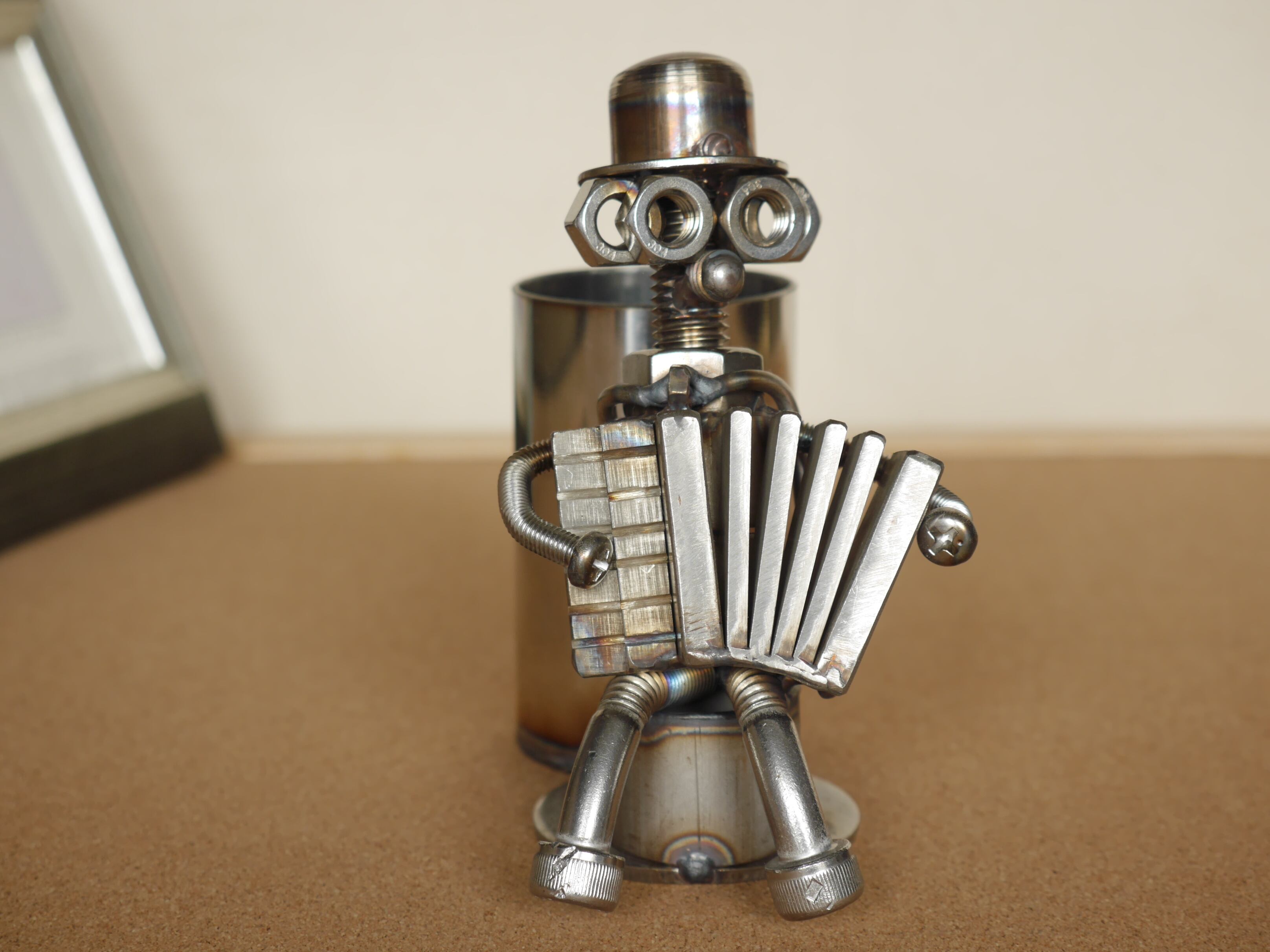 ステンレスのボルト・ナットを使ったロボットの大きいペン立てです。