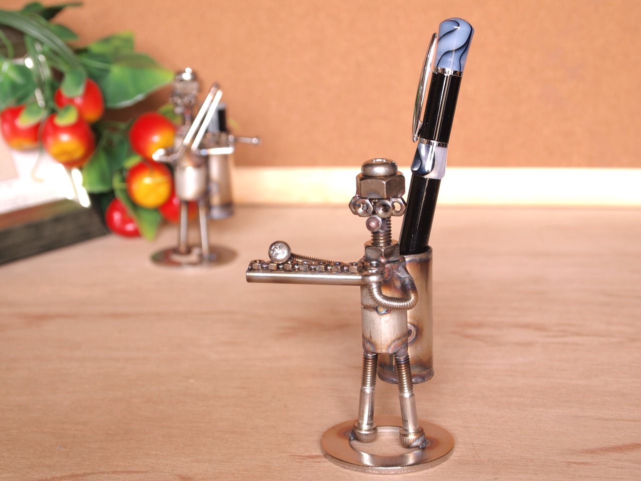 ステンレス製ボルトナットの楽器を演奏するバンドロボット。